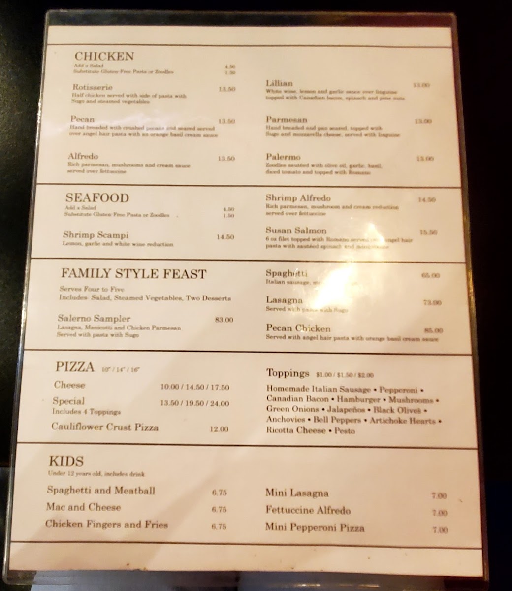 With generous portions and reasonable prices, each dish promises satisfaction. Make sure to save room for their freshly made bread pudding, an indulgent treat that sweetens the experience. Salerno's is not just a place to eat; it's a place to celebrate life’s moments.